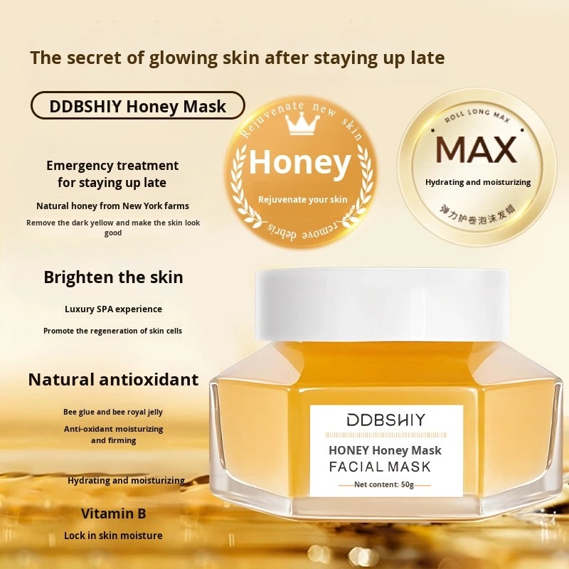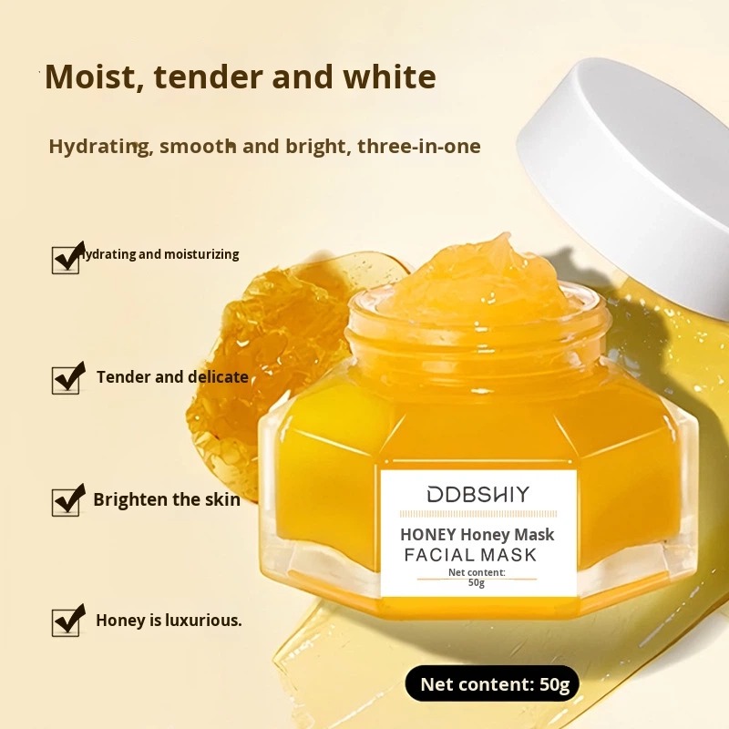 قناع الوجه بالعسل من DDBHIY - تركيبة غنية بالعسل، ونبات السنتيلا الآسيوية، والجلسرين. يرطب البشرة بعمق، ويلطفها، ويمنحها إشراقة لطيفة. يتحول قوامه من كريم إلى قوام حليبي ناعم؛ يُترك طوال الليل لتغذية مكثفة. ٥٠ غرام. مثالي للبشرة الباهتة، والجافة، والحساسة.