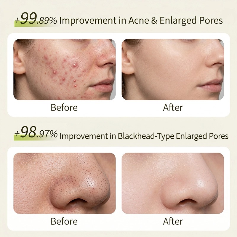 ⇒ علاج حب الشباب الموجه: يستهدف بدقة آفات حب الشباب لتقليل الاحمرار والالتهاب بسرعة، وتحسين الرؤوس السوداء المغلقة، وتوفير حماية طويلة الأمد ضد تكرار ظهور البثور.