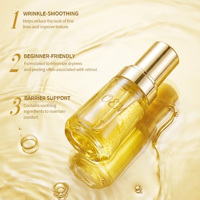 سيروم ريتينول لطيف وفعّال للبشرة الحساسة. تقنية التغليف الدقيق تُطلق المكونات تدريجيًا، مما يُنعّم الخطوط الدقيقة، ويُحسّن ملمس البشرة، ويُوحّد لونها دون احمرار أو تقشير. مثالي للمستخدمين الجدد. مدعوم بأبحاث وتطوير حاصلين على درجة الدكتوراه، وغرفة نظيفة حاصلة على شهادة GMPC. الحد الأدنى لكمية الطلب منخفض، وعينات سريعة. تركيبتك، عبوتك.