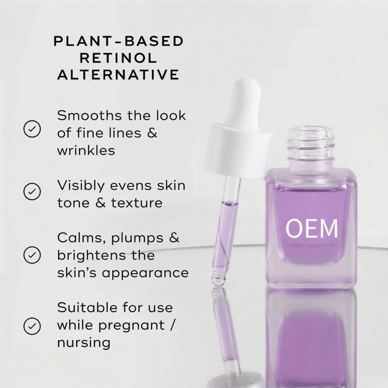 سيروم لطيف لشد البشرة، مصنوع من مكونات نباتية، يساعد على تنعيم التجاعيد ودعم مرونة البشرة، دون التسبب بتهيج الريتينول. يعمل الباكوشيول والببتيدات المحفزة معًا لتحسين تماسك البشرة، بينما تمتص تركيبته الخفيفة بسرعة. مثالي للبشرة الحساسة ولمن يستخدمون الريتينول لأول مرة. مدعوم بفريقنا المتخصص في البحث والتطوير الحاصل على شهادات الدكتوراه وغرفة نظيفة معتمدة من GMPC. تخصيص كامل - التركيبة، والتغليف، والعطر، والشعار. حد أدنى منخفض للطلب، وعينات سريعة (15 يومًا). موثوق بنا من قبل علامات تجارية في الولايات المتحدة الأمريكية، وألمانيا، والشرق الأوسط.