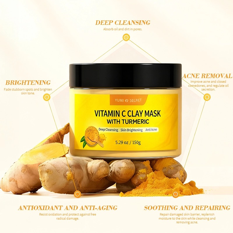 ⇒ قناع الطين بفيتامين سي والكركم: تركيبة أساسية 150 غ/5.29 أونصة لتفتيح البشرة ومكافحة حب الشباب.
